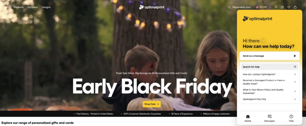 以Optimalprint为例,该品牌通过AI聊天机器人解答常规问题,仅当FAQ未覆盖时才转接人工客服。