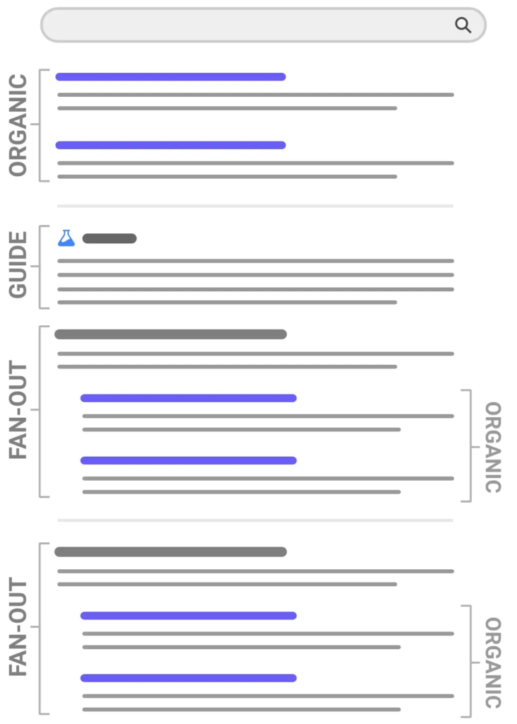 与AI模式类似,网络指南使用了查询分支扩展技术,同时发出多个相关搜索以识别最相关的结果。