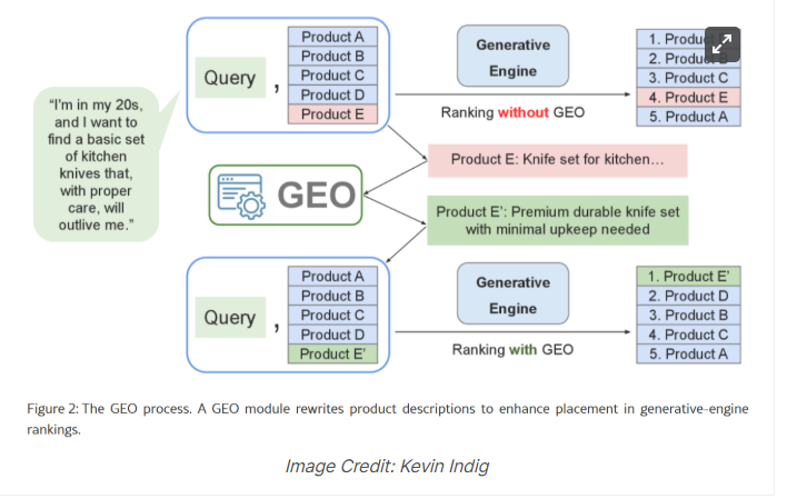 研究者构建了“E-GEO测试平台”——一个包含7000多个真实产品查询(来自Reddit)与超50000条亚马逊商品信息配对的评估框架,用于测试不同文本改写策略如何提升商品在大语言模型(GPT-4o)中的可见度。该系统通过对比商品描述经AI改写前后的AI可见度变化来评估效果。