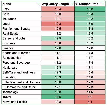 - 旅游、新闻与政治类查询引文率极低(<10%)