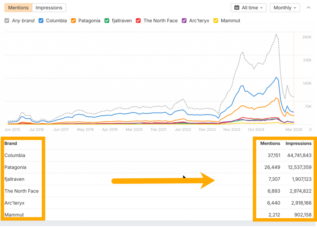 - 发现竞争对手被提及而你未被提及的空白点。 如果有人问”什么是最好的徒步背包?”,每个回复都提到了Osprey、Gregory和Deuter,但没有Fjällräven——这就是一个可见度缺口。如果这个帖子在谷歌上有排名,那它同时也是一个关键词缺口。