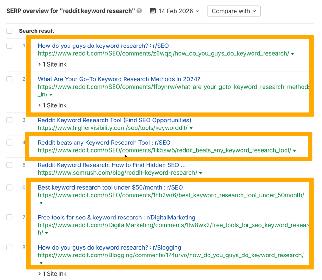 (事实上,如果你在谷歌搜索“reddit关键词研究”,会发现排名前10的结果中有6个是Reddit上的实际帖子。)