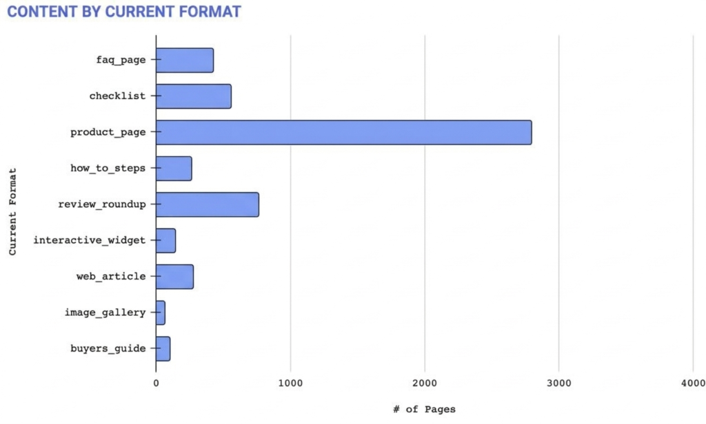 我们曾审计过一个电商网站,该网站拥有数千个面向“明确知道自己想要什么”的用户的库存页面。然而,该公司几乎没有任何漏斗顶层的内容。通过识别这一差距,我们得以制定策略,在行业专家和B2B客户搜索的早期阶段就触达他们,而此前,这部分受众根本看不到这个品牌的存在。